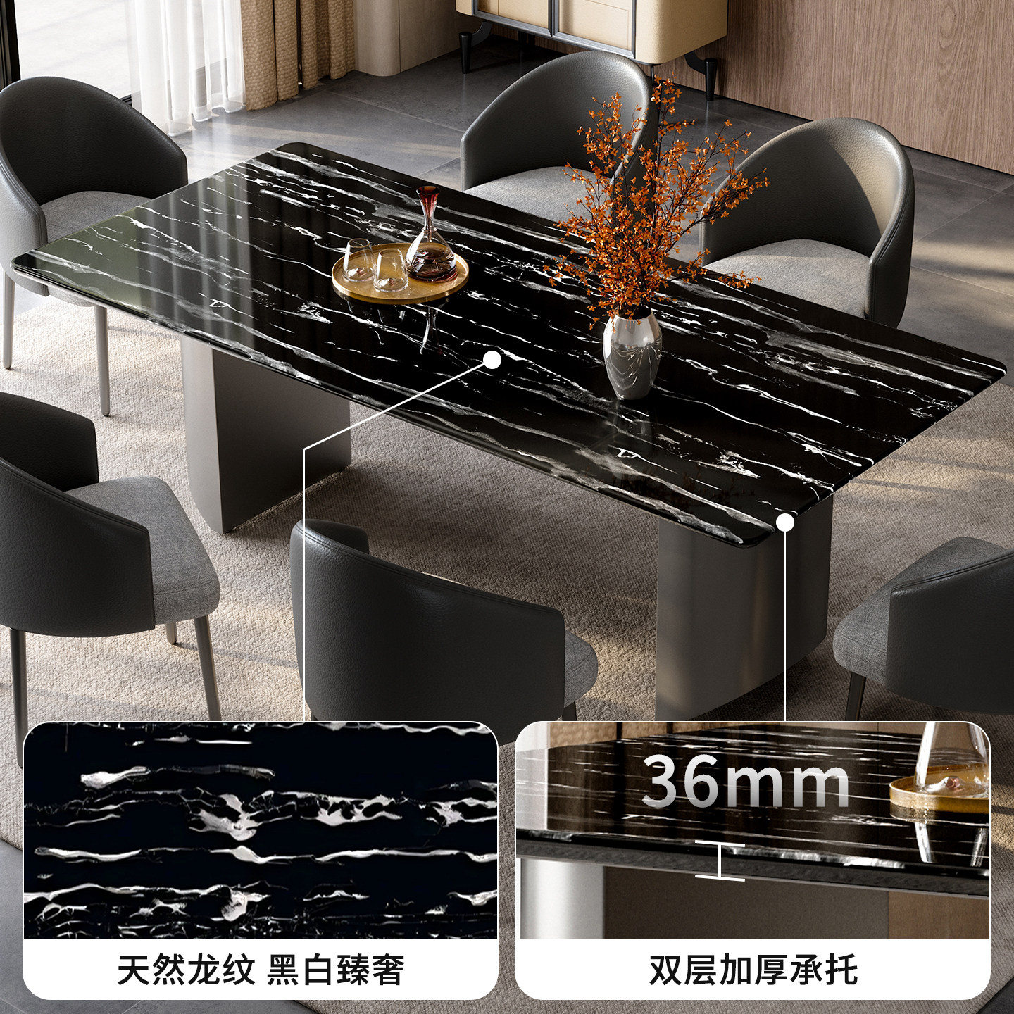 餐桌椅 天然奢石高端餐桌进口范思哲黑奢石餐桌天然大理石高端意式