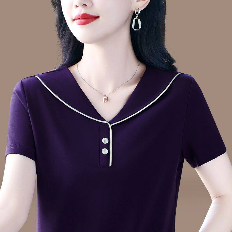 为您提供商品宽松显瘦翻领洋气大码 新款 妈妈装 百搭休闲上衣2026夏季 T恤女 短袖的详细介绍,