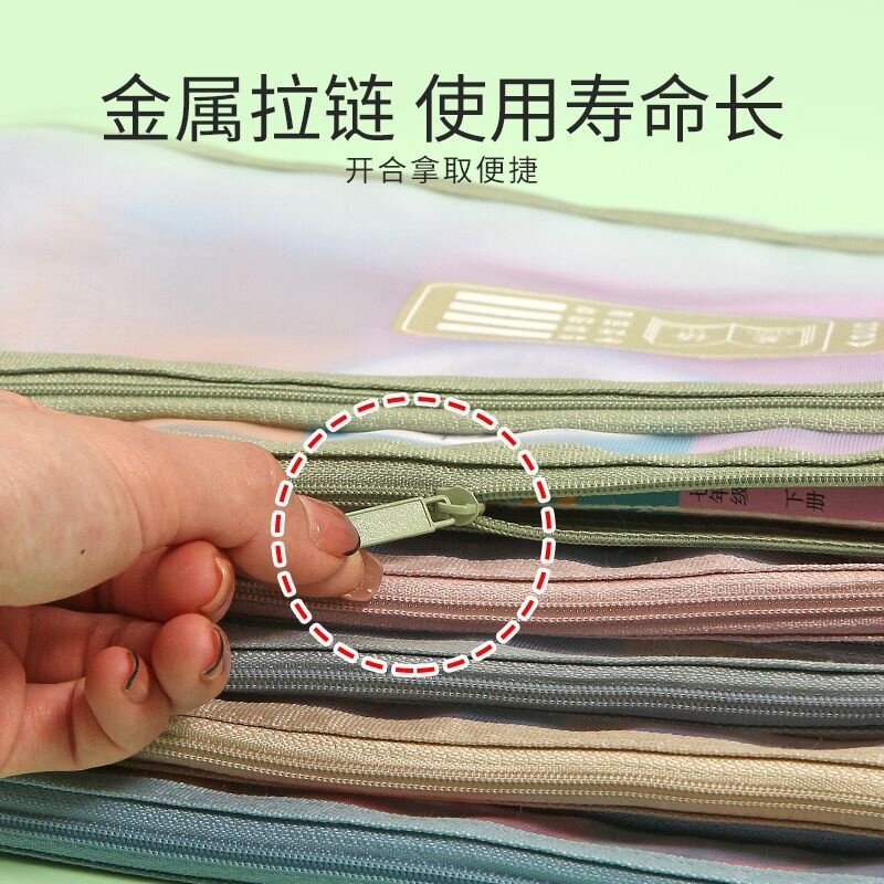 得力文件袋学科袋科目分类袋拉链袋大容量学生双层资料书本学生课本手提拎网纱分科书袋a4试卷收纳袋