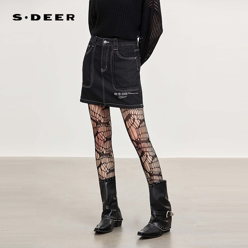 sdeer圣迪奥女装 复古高腰撞色字母牛仔宽松短裙S262Z1302 26年新品