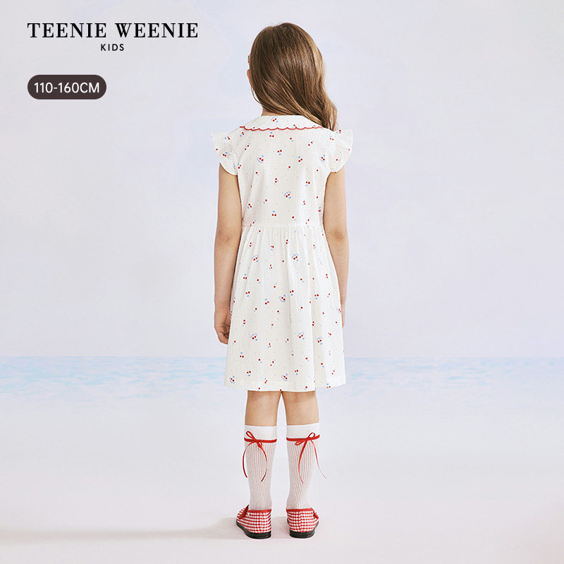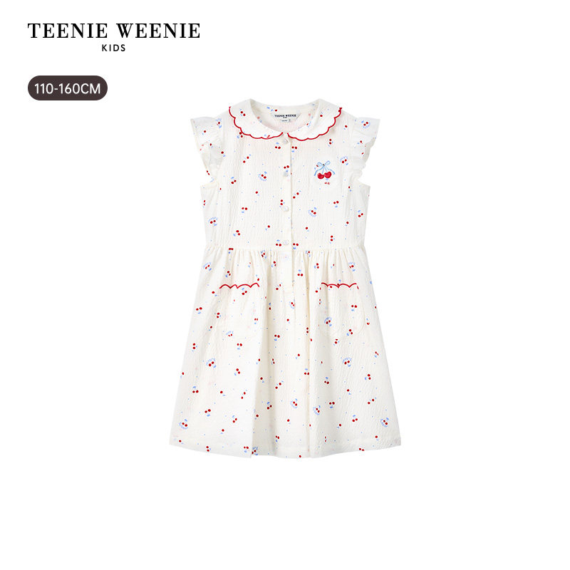 TeenieWeenie 26夏新款 女童樱桃满印翻领飞袖 连衣裙 Kids小熊童装
