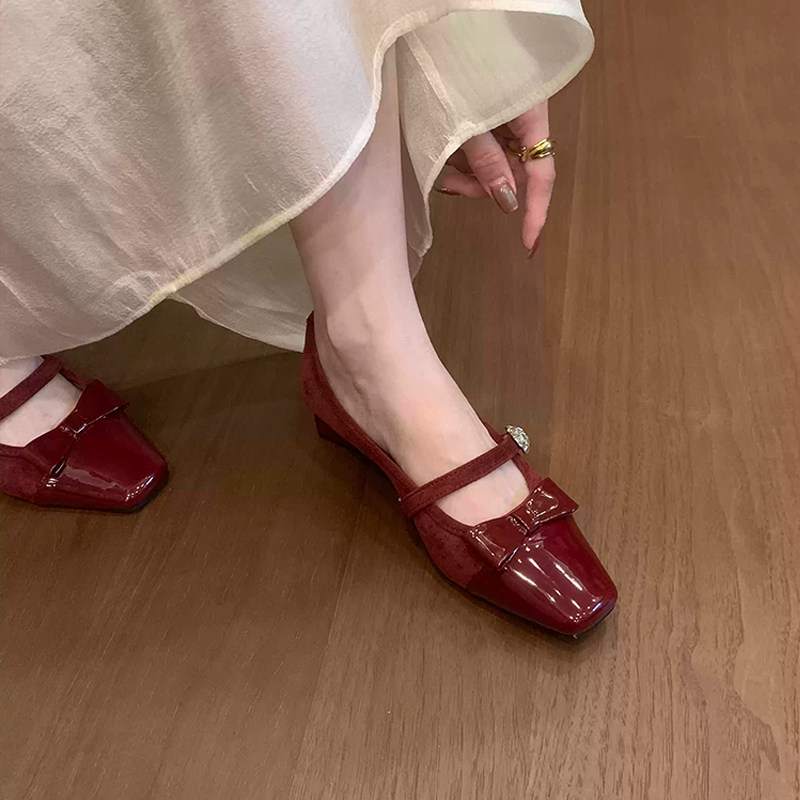 新款 女2026春季 气质浅口单鞋 巨好看红色婚鞋 水钻平底鞋 爆款 羊皮版