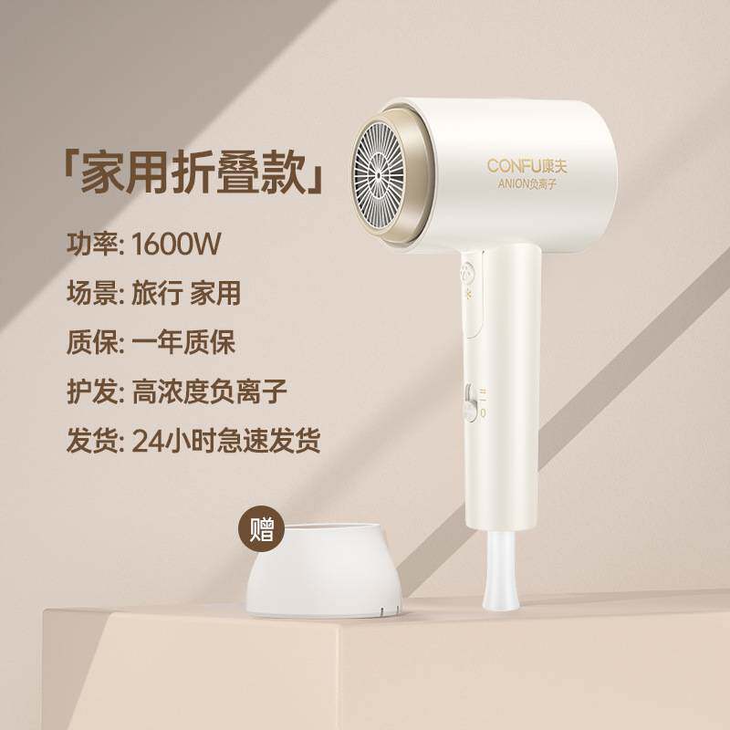 康夫电吹风机家用负离子护发专用大功率速干宿舍用学生可折叠风筒