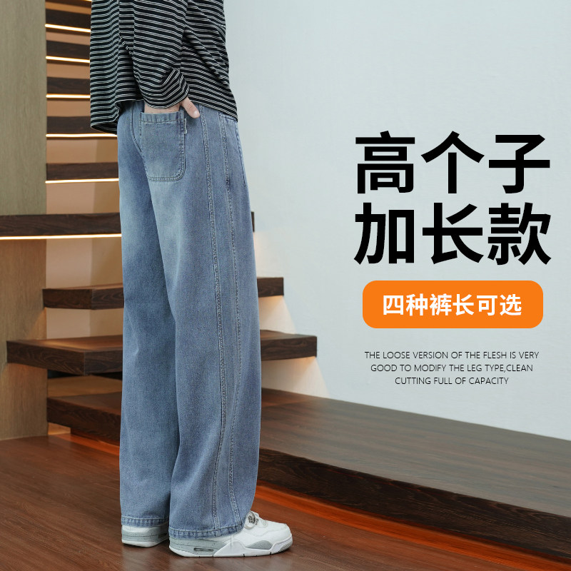 190高个子加长版 男春季 120cm学生百搭宽松直筒休闲裤 潮 复古牛仔裤由