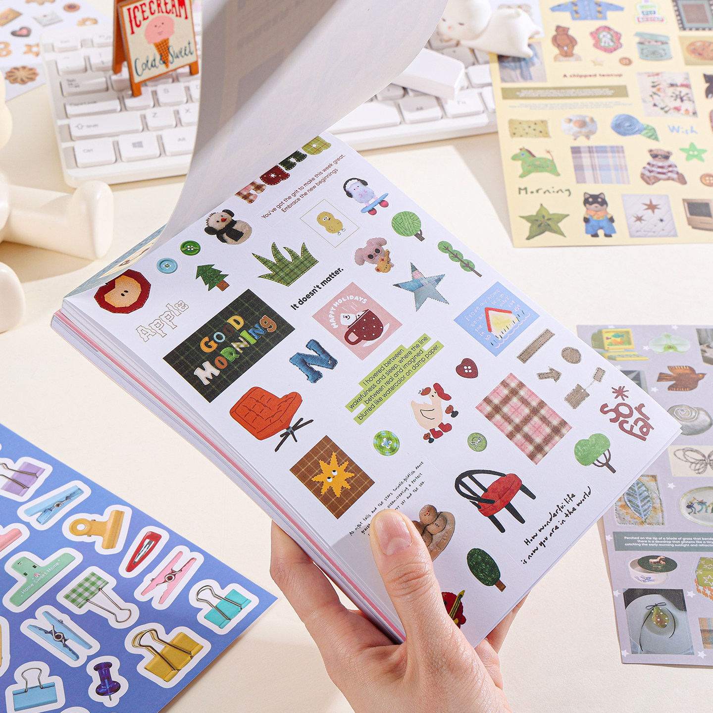 素A5大尺寸贴纸本古早ins文字风景手帐复古diy装 饰素材本 元 1300