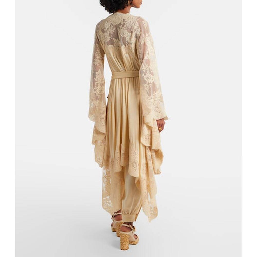 潮奢 女士 Como 蕾丝边垂褶真丝中长连衣裙 ZIMMERMANN由