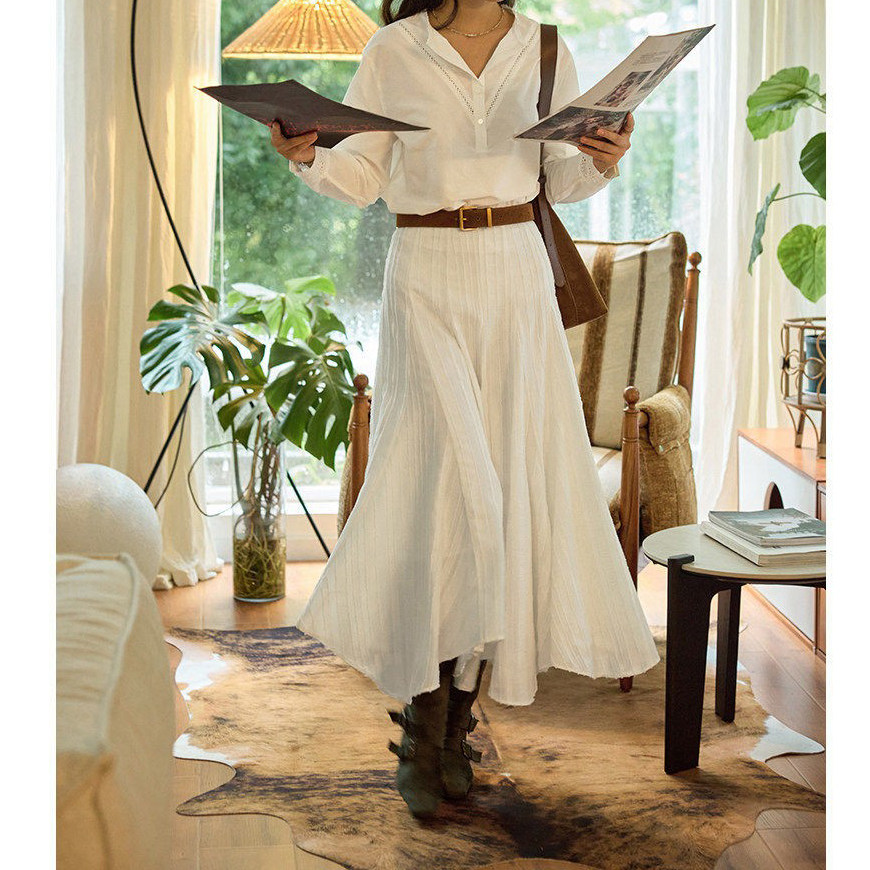 2026新款 显瘦伞裙长裙 复古白色高腰a字半身裙女春季 solighter法式