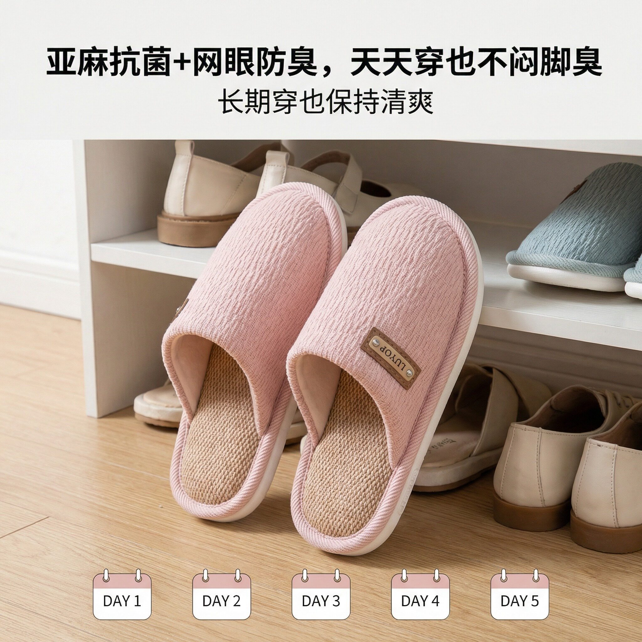 居家室内四季 利达妮亚麻拖鞋 女款 2026新款 防臭防滑静音棉麻布拖鞋