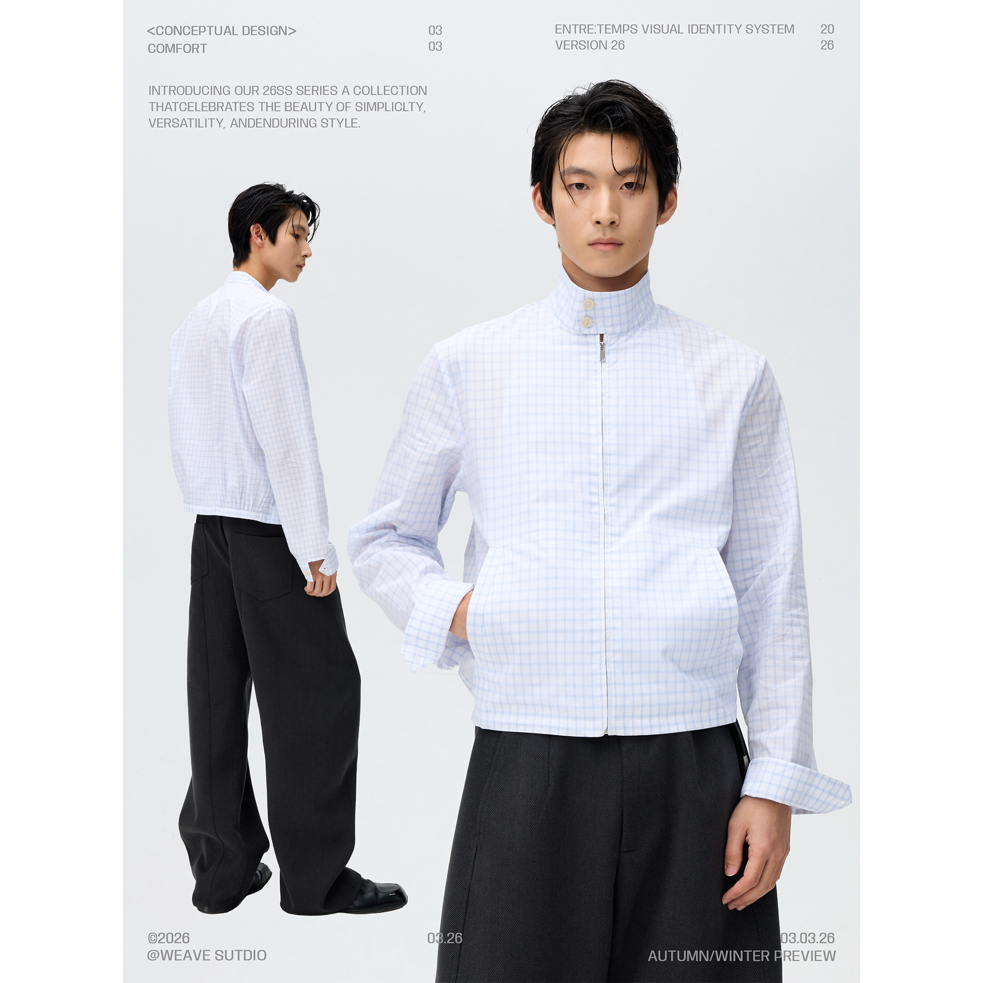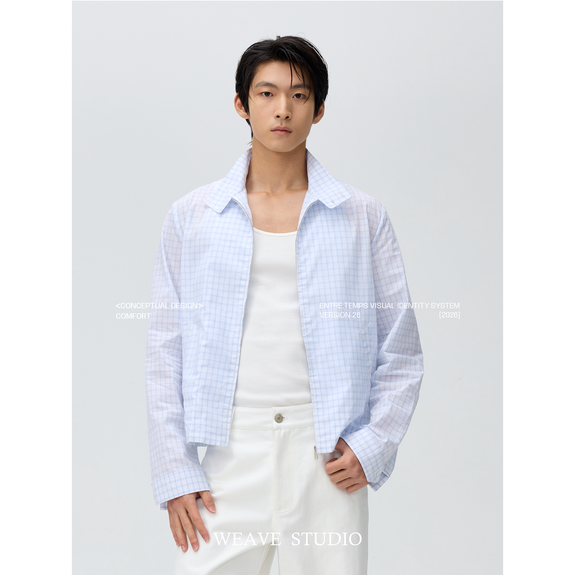 蓝白色春夏格纹miu系全棉衬衫 正肩轻薄外套夹克 清透时刻 weave