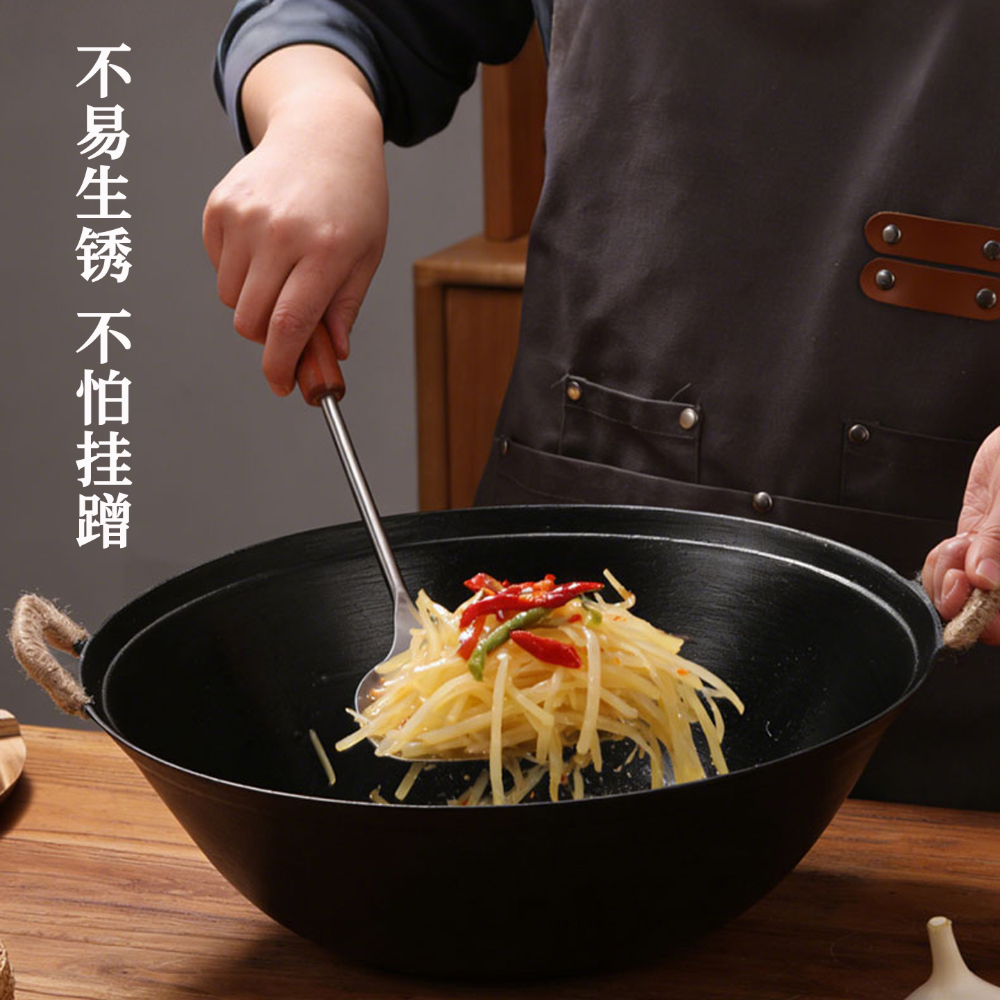 炒锅家用不粘锅无涂层燃气灶适用 章丘炒菜锅传统铁锅官方旗舰老式