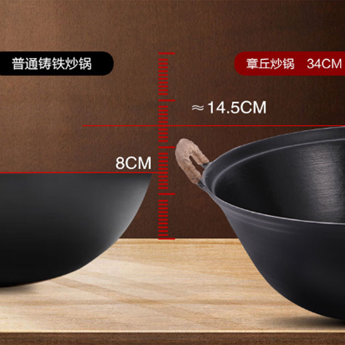 章丘手工铁锅官方旗舰店老式 锅 铸铁锅家用无涂层不粘锅双耳锅老式由