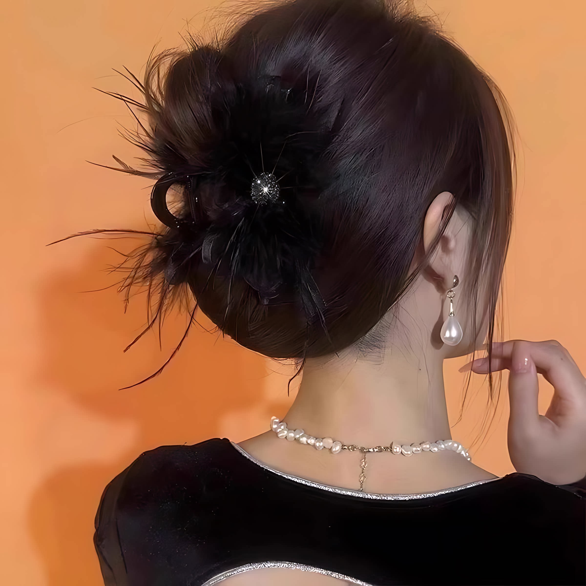 浪漫毛毛抓夹秋冬新款 风欧根纱蝴蝶结羽毛8厘米抓夹气质时尚 超仙由