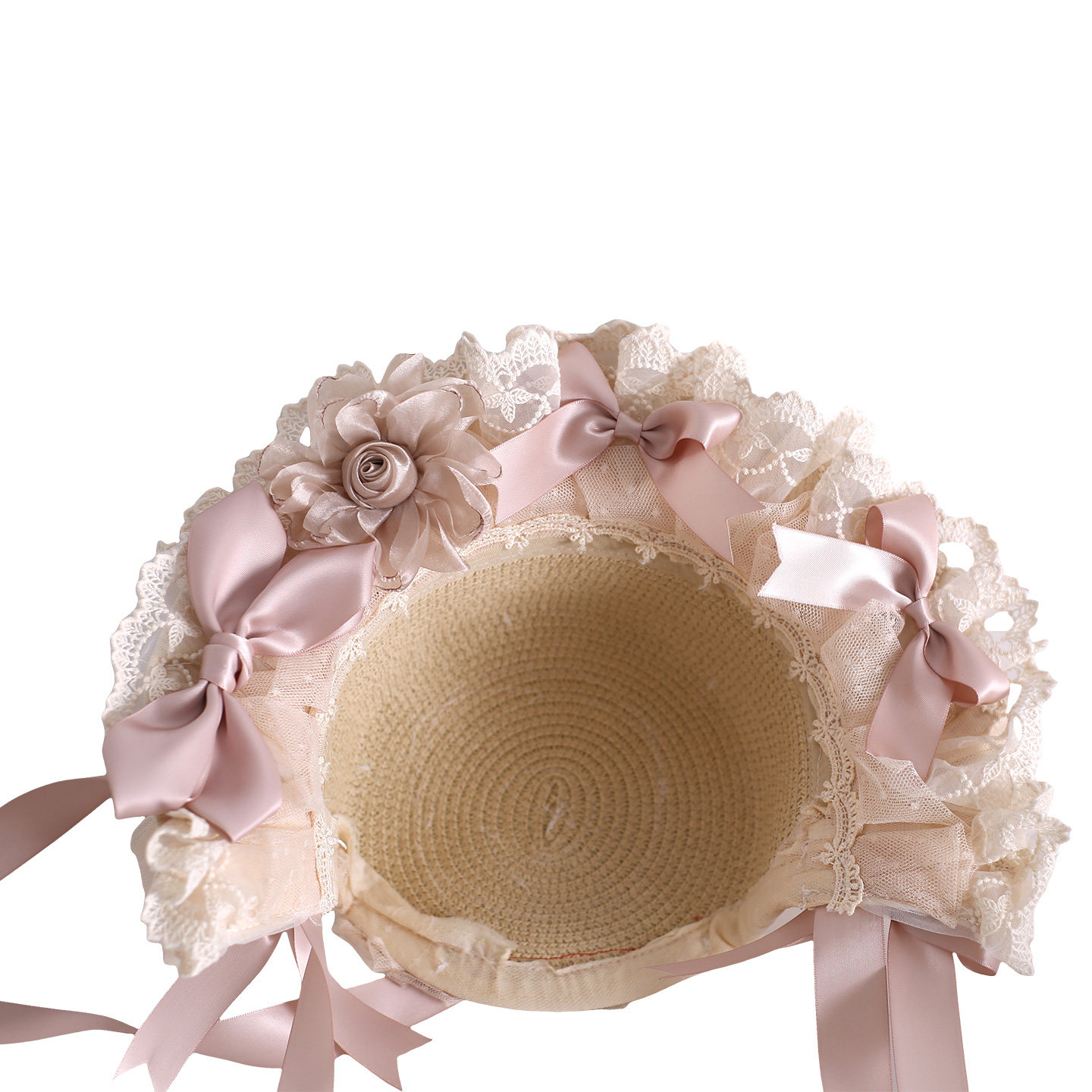 原创Lolita灯影发饰生成色波奈特bnt蕾丝cla系蝴蝶结草帽香槟色