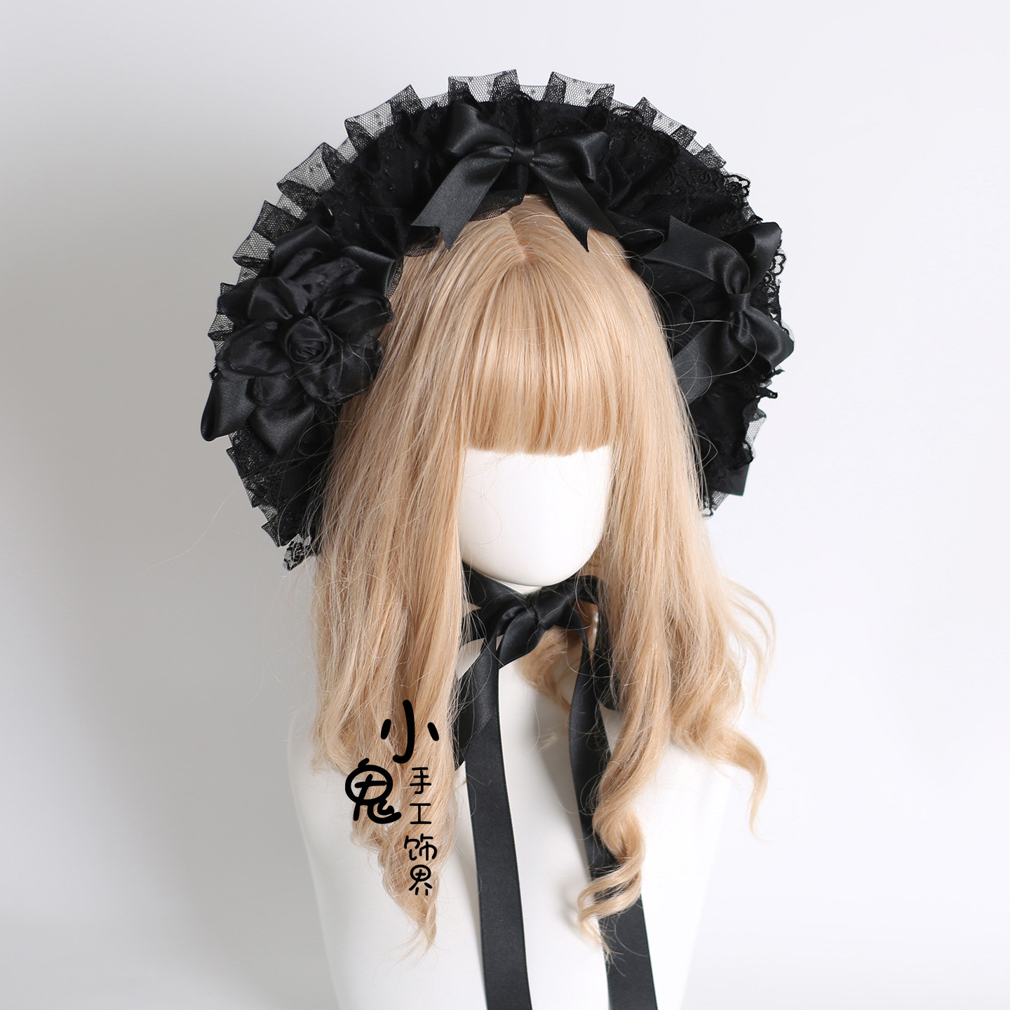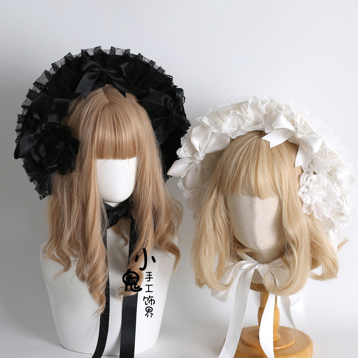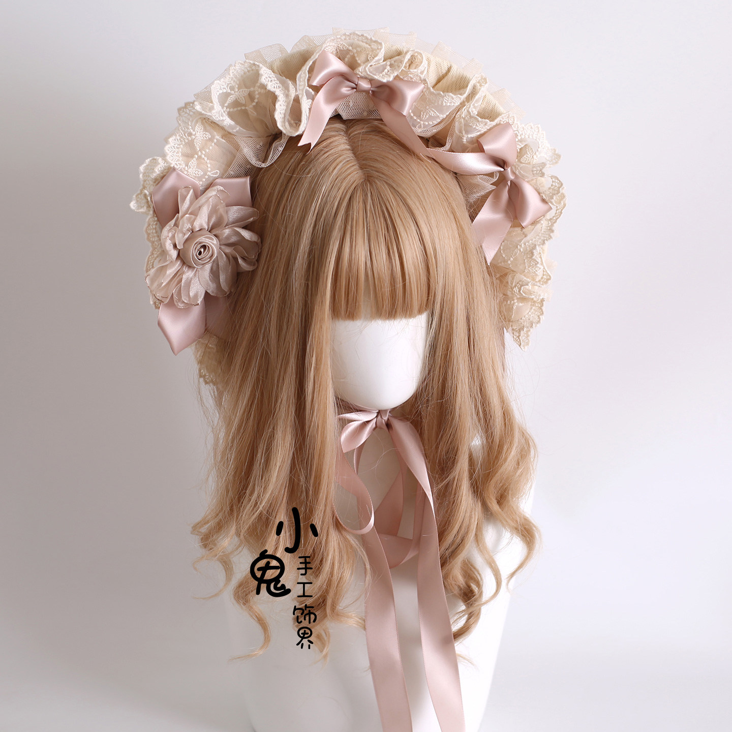 原创Lolita灯影发饰生成色波奈特bnt蕾丝cla系蝴蝶结草帽香槟色由