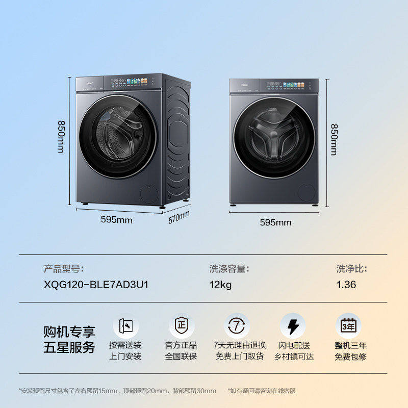 ⭐小红书推荐⭐海尔洗衣机滚筒全自动12kg大容量XQG120 云溪5.0 BLE7AD3U1,所属洗衣机分类,由淘宝网挑选推荐!小红书抖音网红同款!哪里有卖海尔洗衣机滚筒全自动12kg大容量XQG120 云溪5.0 BLE7AD3U1和多少钱质量怎么样✅。