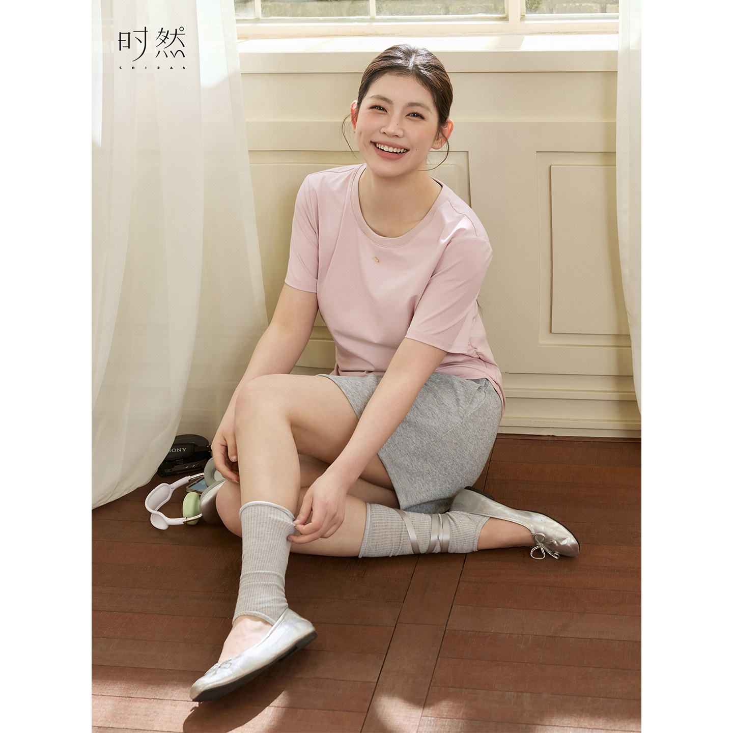 时然大码 T恤微胖mm纯色百搭上衣亲肤透气春季 宽松时尚 百搭 短袖
