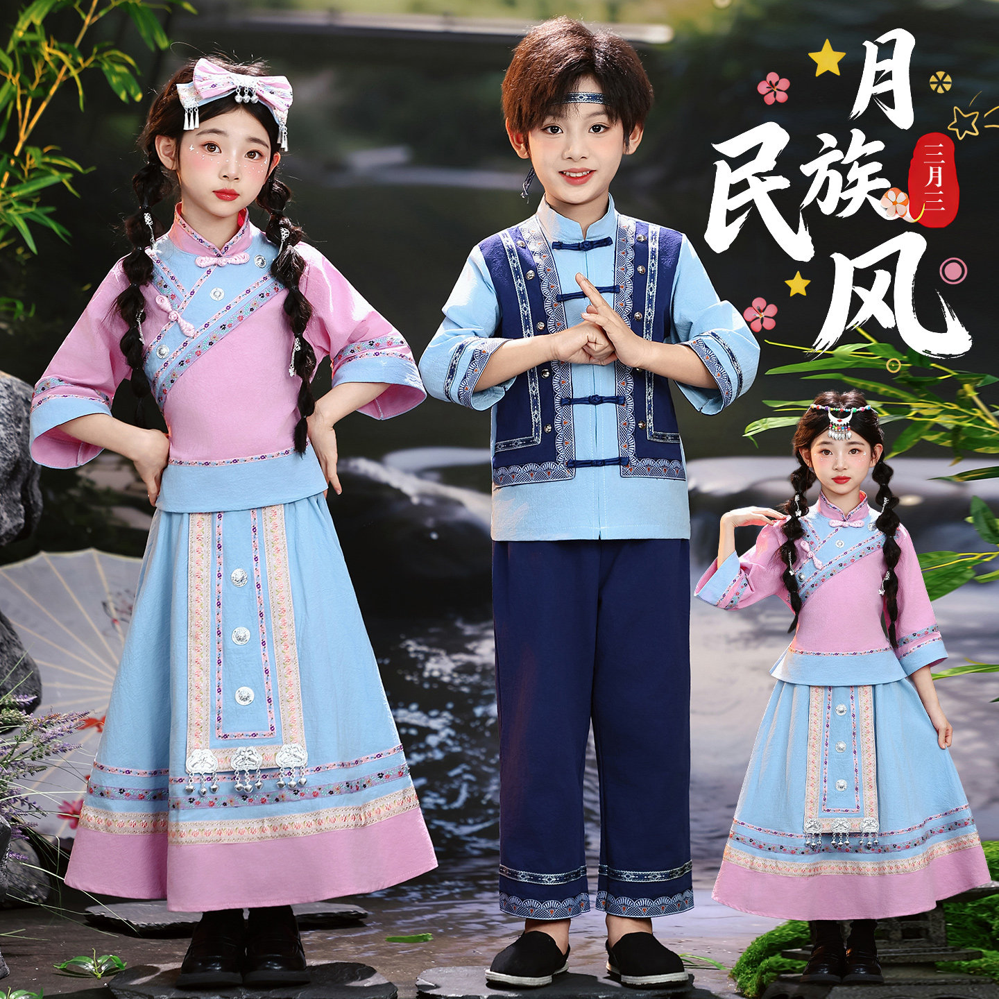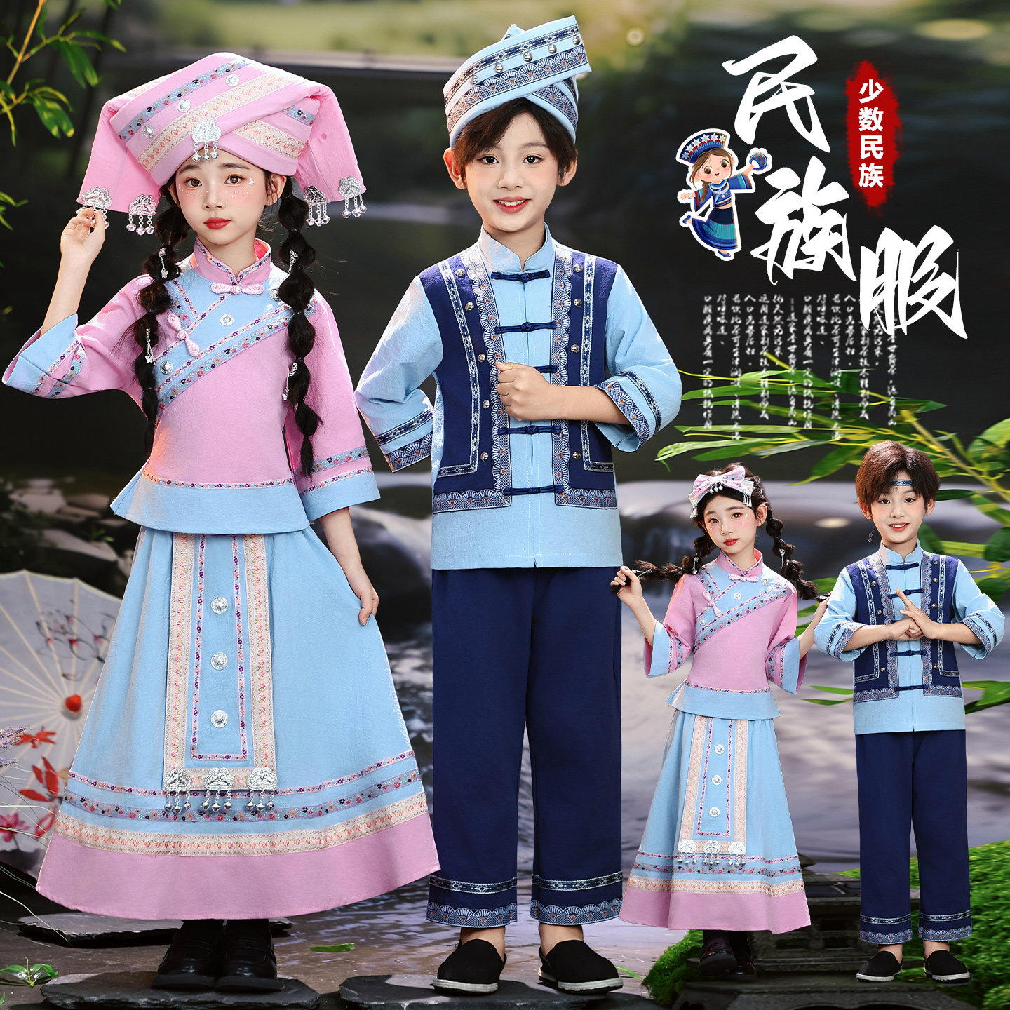 广西三月三壮族服装 儿童男女童民族风演出服传统服饰舞台表演套装