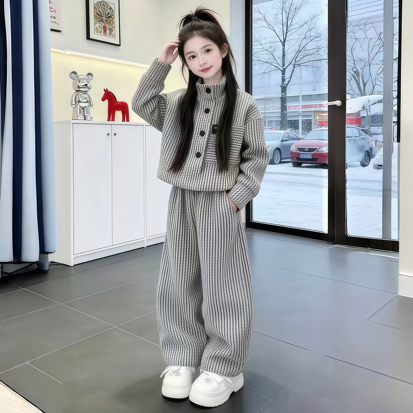 女童春装 2026新款 洋气儿童春秋条纹卫衣阔腿裤 男童两件套 休闲套装由