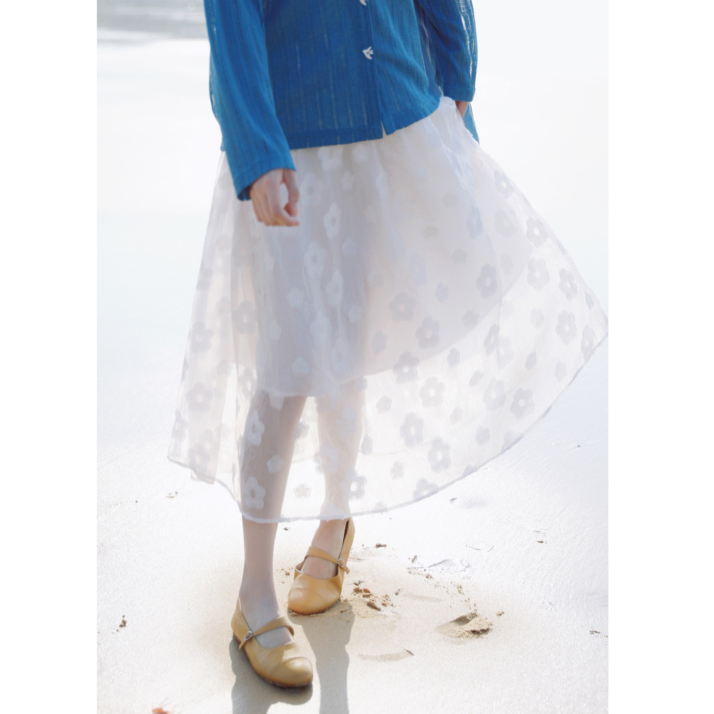 为您提供商品夏宽松休闲半裙 花吉Q580白色日系高腰光泽感花影半身裙2026新款的详细介绍,