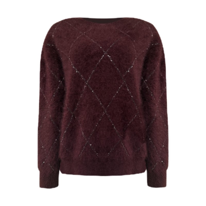 优雅全羊毛软糯亲肤菱形亮丝设计套头针织衫 绒光套头 雅舒曼