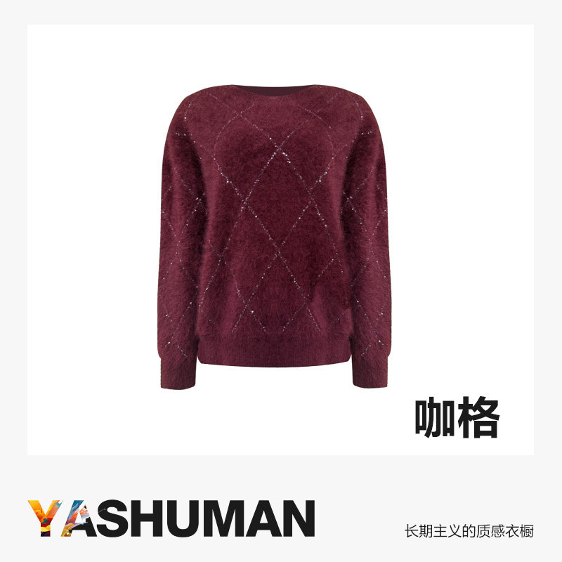 优雅全羊毛软糯亲肤菱形亮丝设计套头针织衫 绒光套头 雅舒曼由