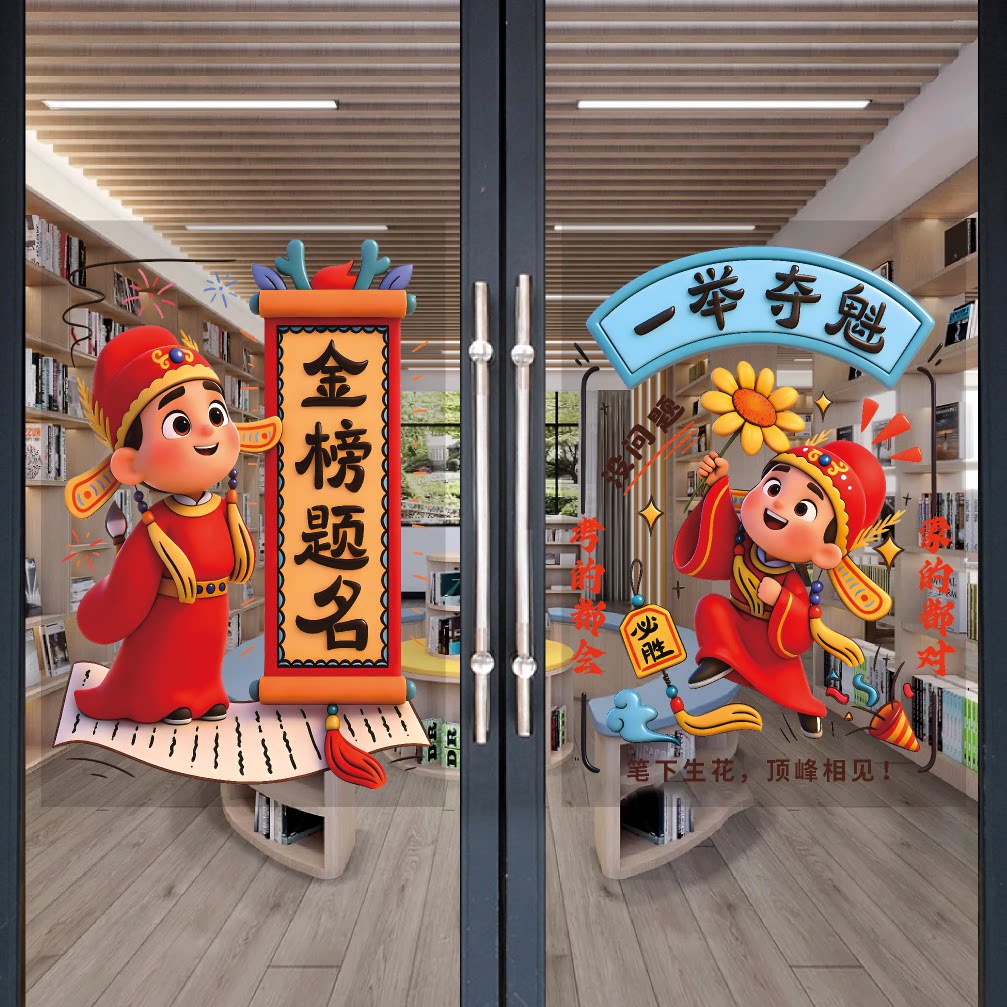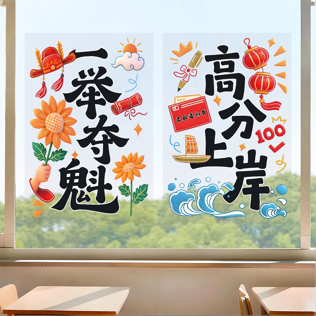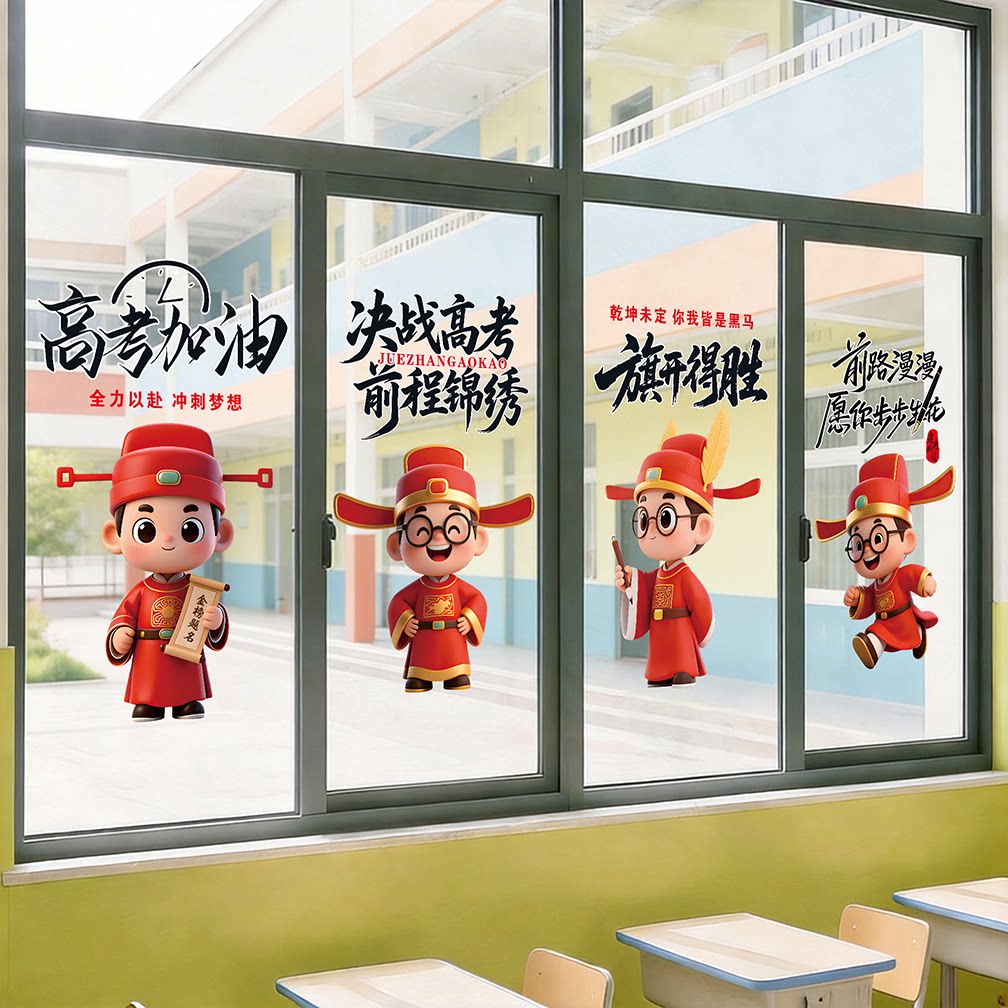 郎中考高考教室布置窗户静电贴初高三激励学习励志玻璃贴 卡通状元