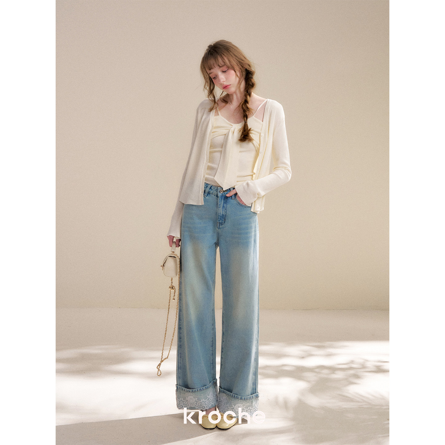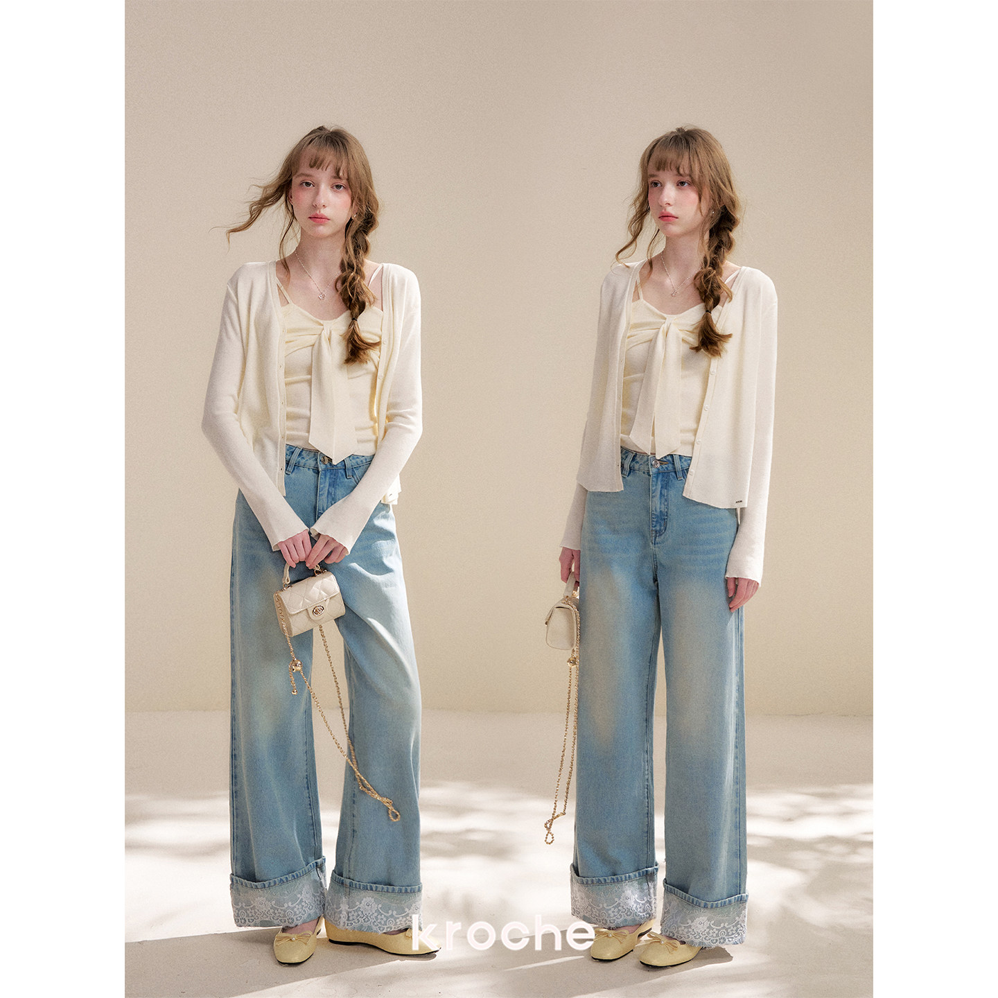 蝴蝶结系带吊带背心套装 Kroche 针织开衫 羊毛混纺 26ss 浪漫法式