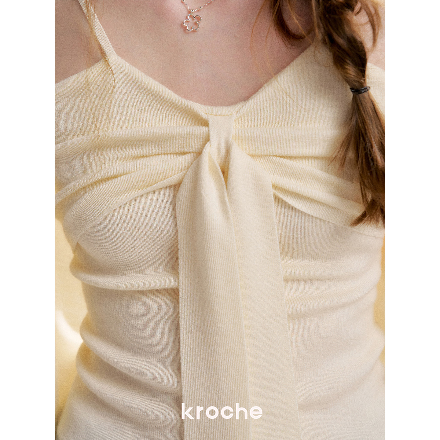 蝴蝶结系带吊带背心套装 Kroche 针织开衫 羊毛混纺 26ss 浪漫法式由