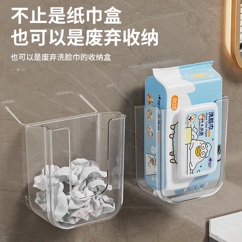 厨房卫生间厕所浴室倒挂抽纸盒透明 轻奢洗脸巾收纳盒纸巾盒壁挂式