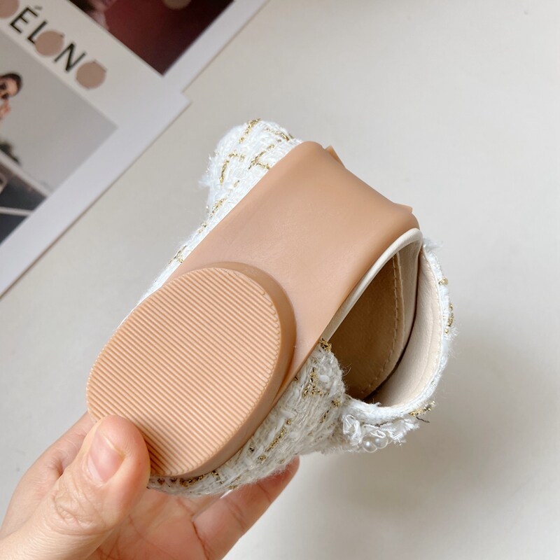 鞋 复古格纹浅口猪蹄单鞋 洋气羊蹄瓢鞋 子女夏INS百搭潮分趾平底鞋