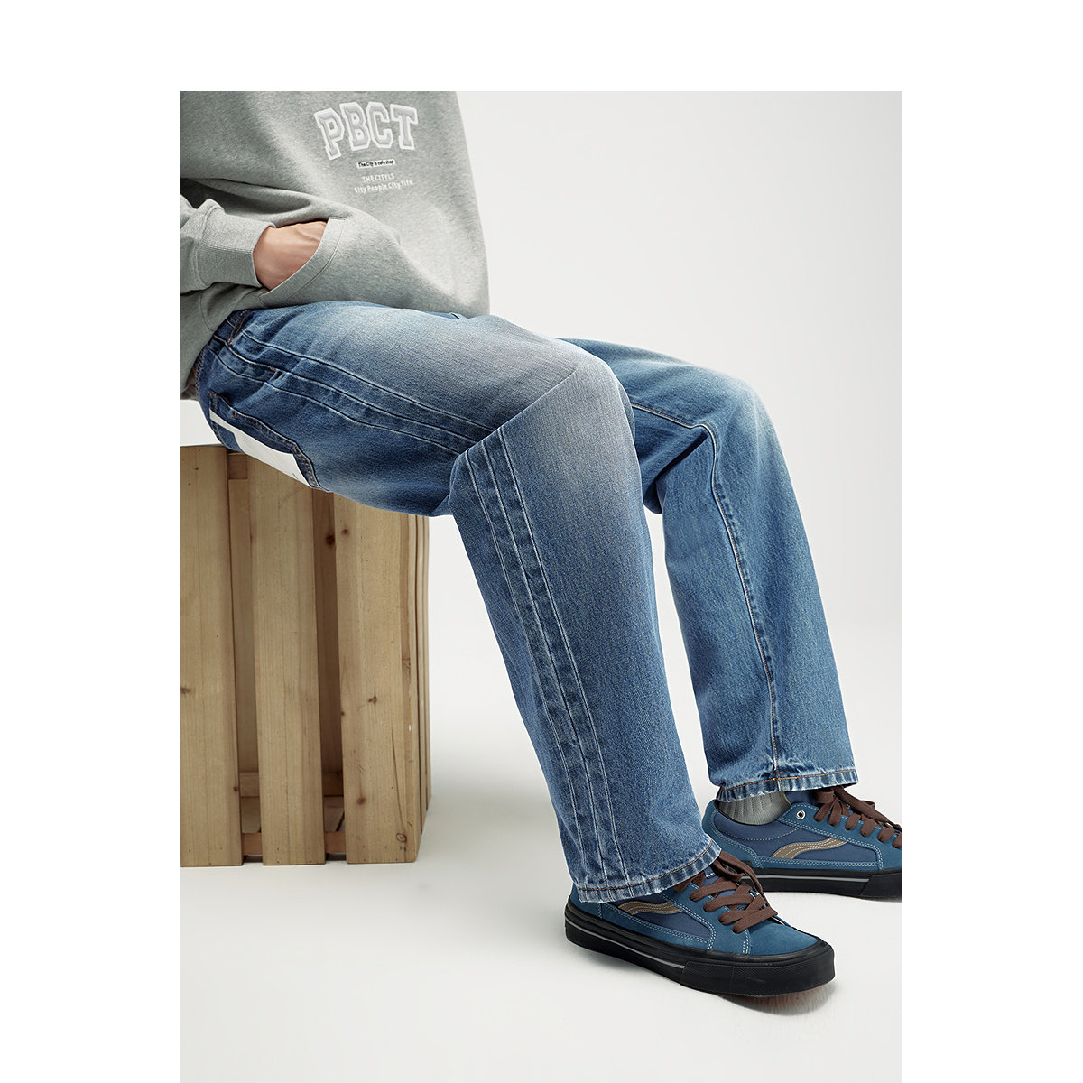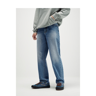 太平鸟男装 24秋季 新款 宽松直筒双色水洗浅色全棉BWHAE3139 牛仔裤