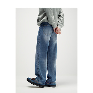 浅色水洗牛仔裤 GWIT 美式 垂感cleanfit春秋宽松直筒阔腿长裤 男士