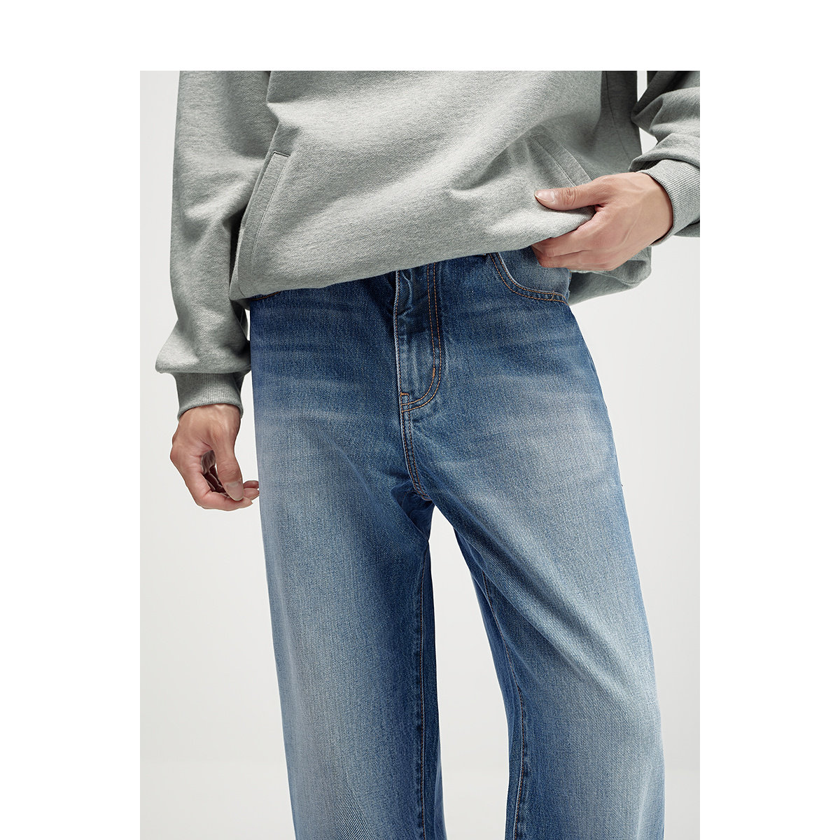 太平鸟男装 24秋季 新款 宽松直筒双色水洗浅色全棉BWHAE3139 牛仔裤由