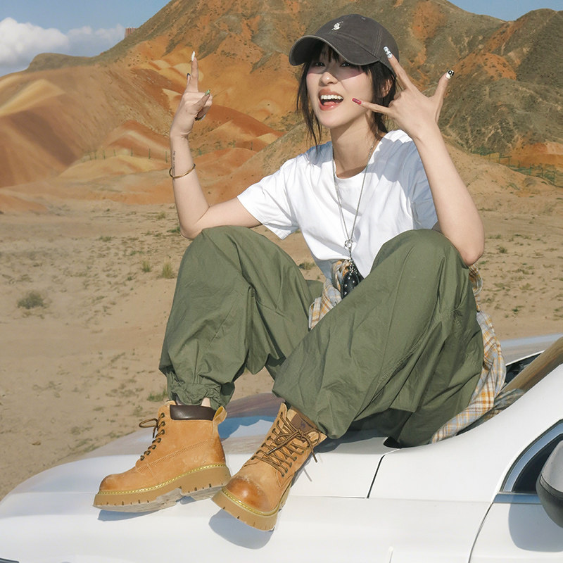 大黄靴登山鞋 迪丽热巴同款 骆驼山越马丁靴春夏女鞋 靴 短靴时装