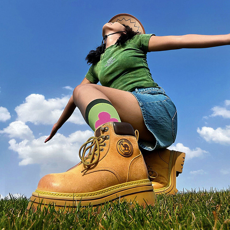MRA插画大黄靴男款 中帮厚底马丁靴美式 复古户外高帮工装 靴子 春季