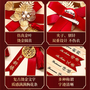 襟花红色 结婚胸花新郎新娘家人用品伴郎伴娘父母胸针婚礼婚庆中式