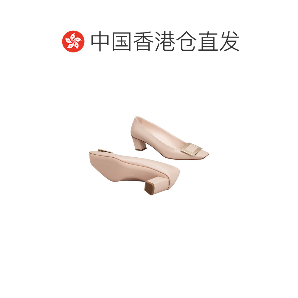 饰小方头漆皮中跟单鞋 香港直邮秀气精致女人味金属方扣装 1h可退由