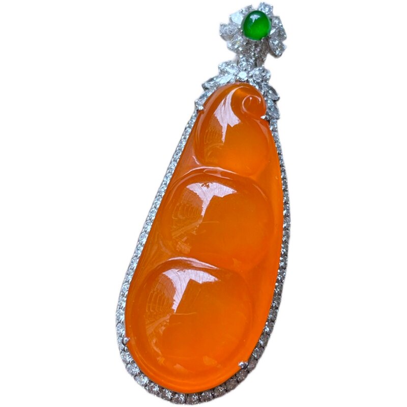 豆翡翠玉石吊坠 四季 丰收 冰黄四季 女士福豆 18k金钻奢华镶嵌项坠由