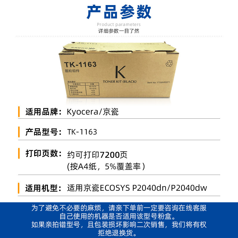 为您提供商品1163粉盒EcosysP2040dn P2040dw打印机墨粉碳粉不干胶 京瓷TK 原装的详细介绍,