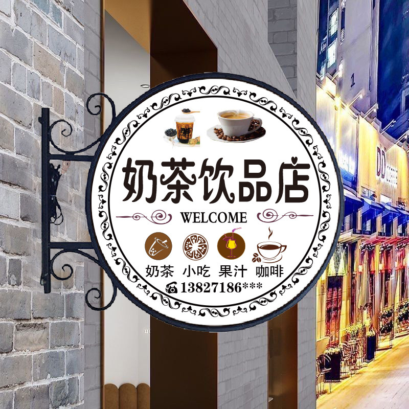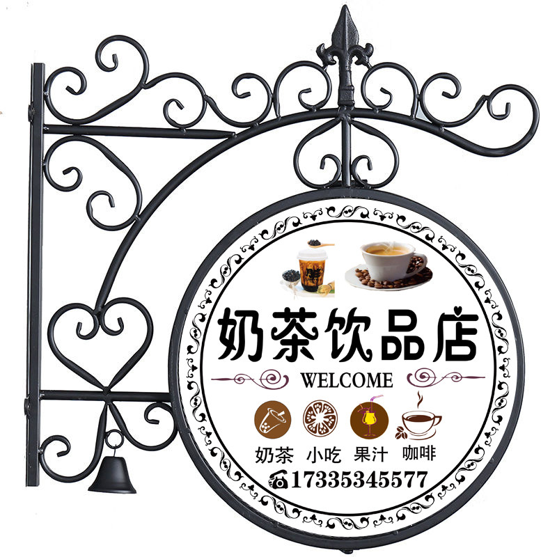 铁艺灯箱圆形方形双面LED亚克力奶茶咖啡美甲店铺招牌广告牌 欧式由