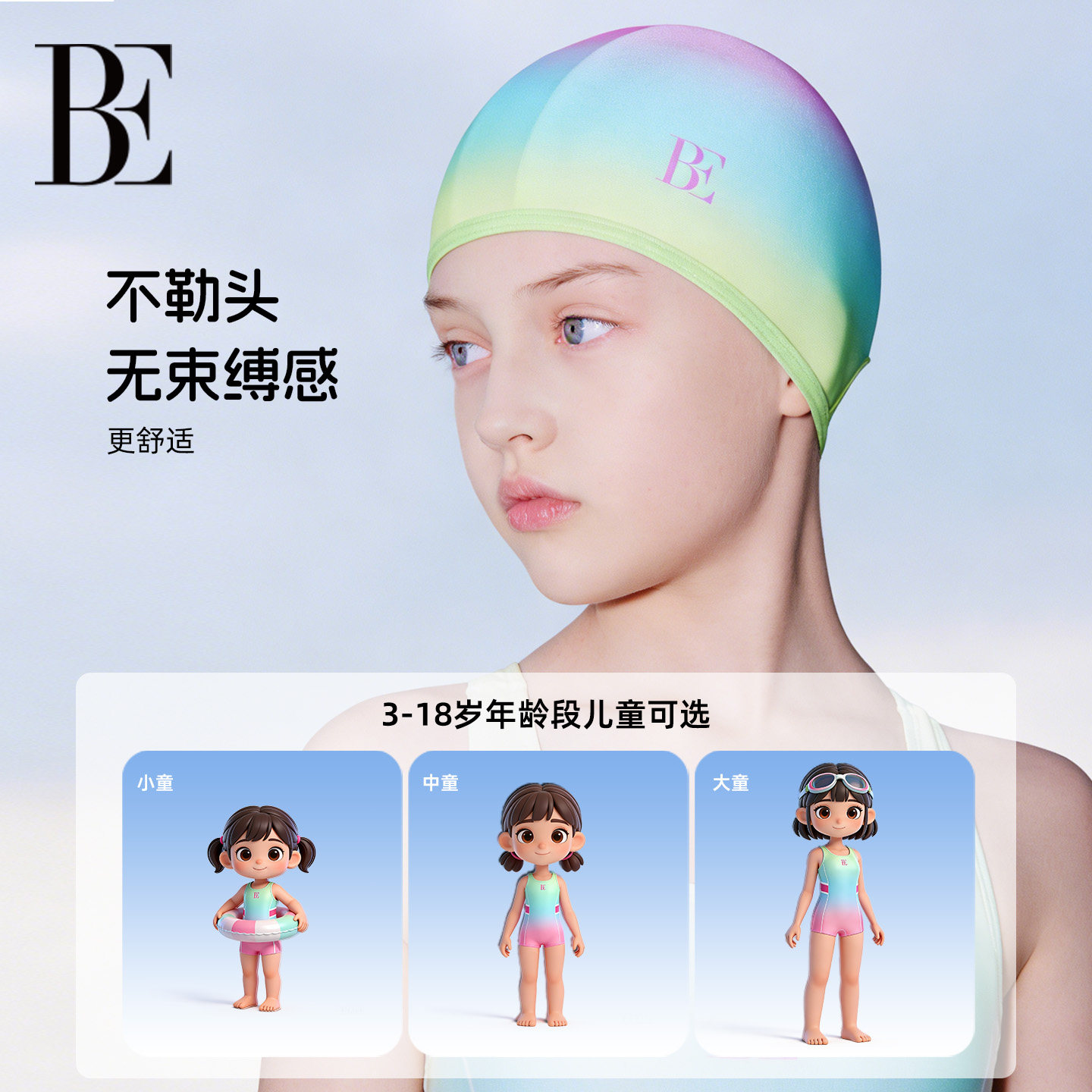 BE范德安儿童泳帽男童女童游泳帽游泳训练可调节透气布泳帽不勒头