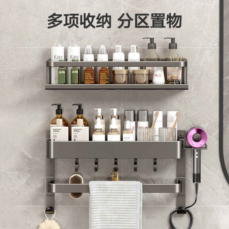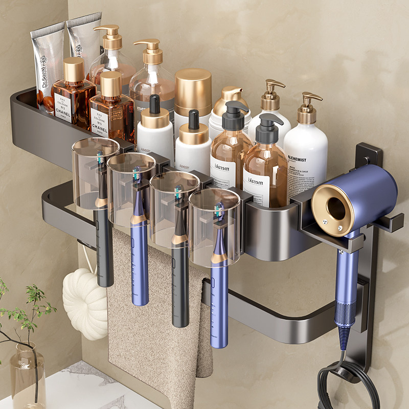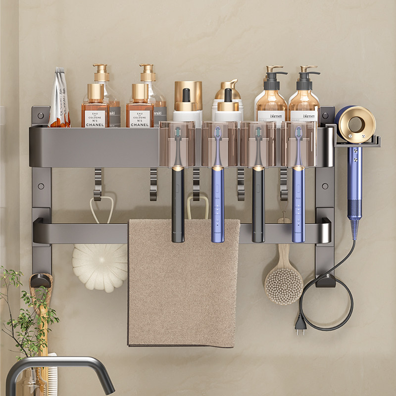 为您提供商品浴室洗漱台免打孔吹风机收纳牙杯毛巾架 卫生间置物架牙刷架壁挂式的详细介绍,