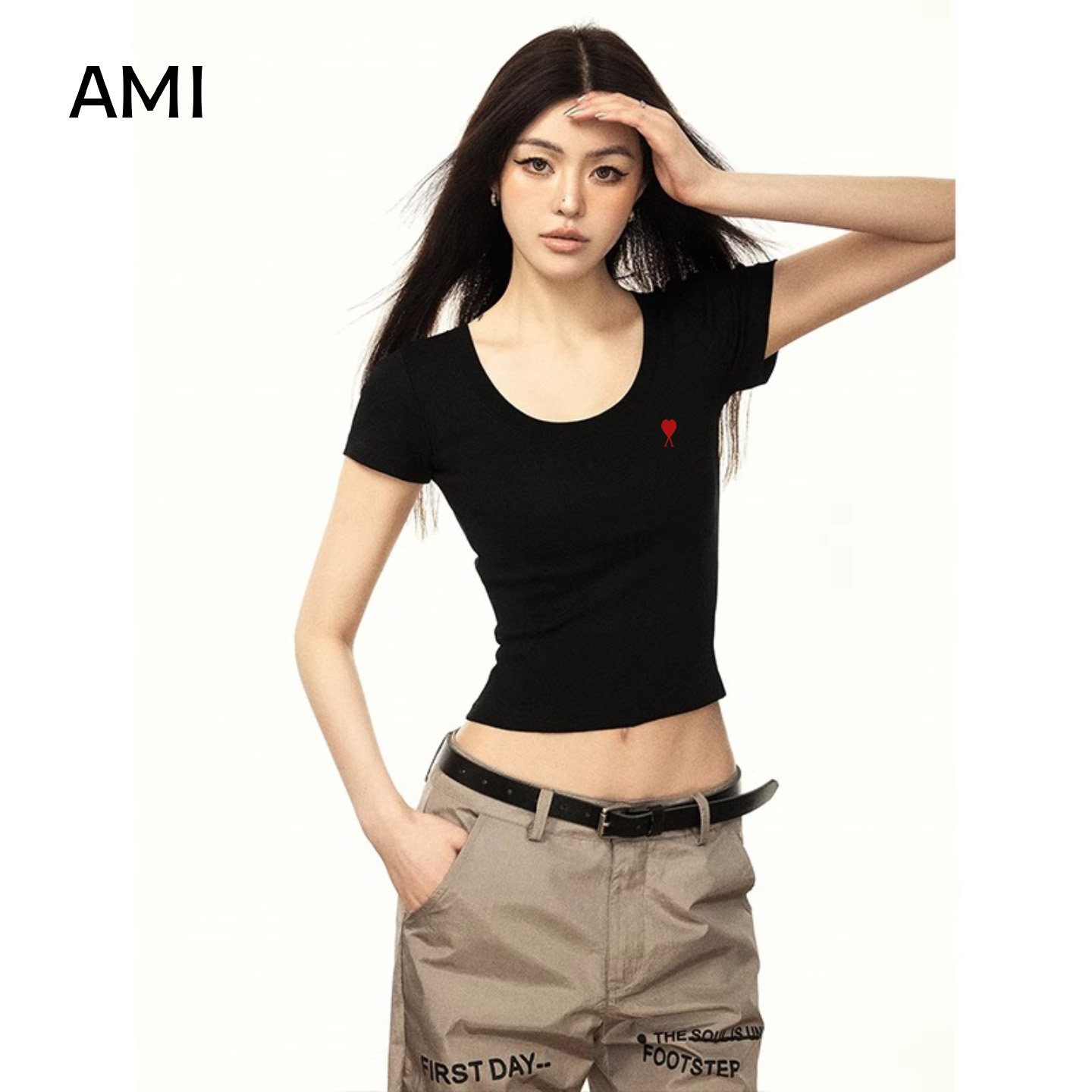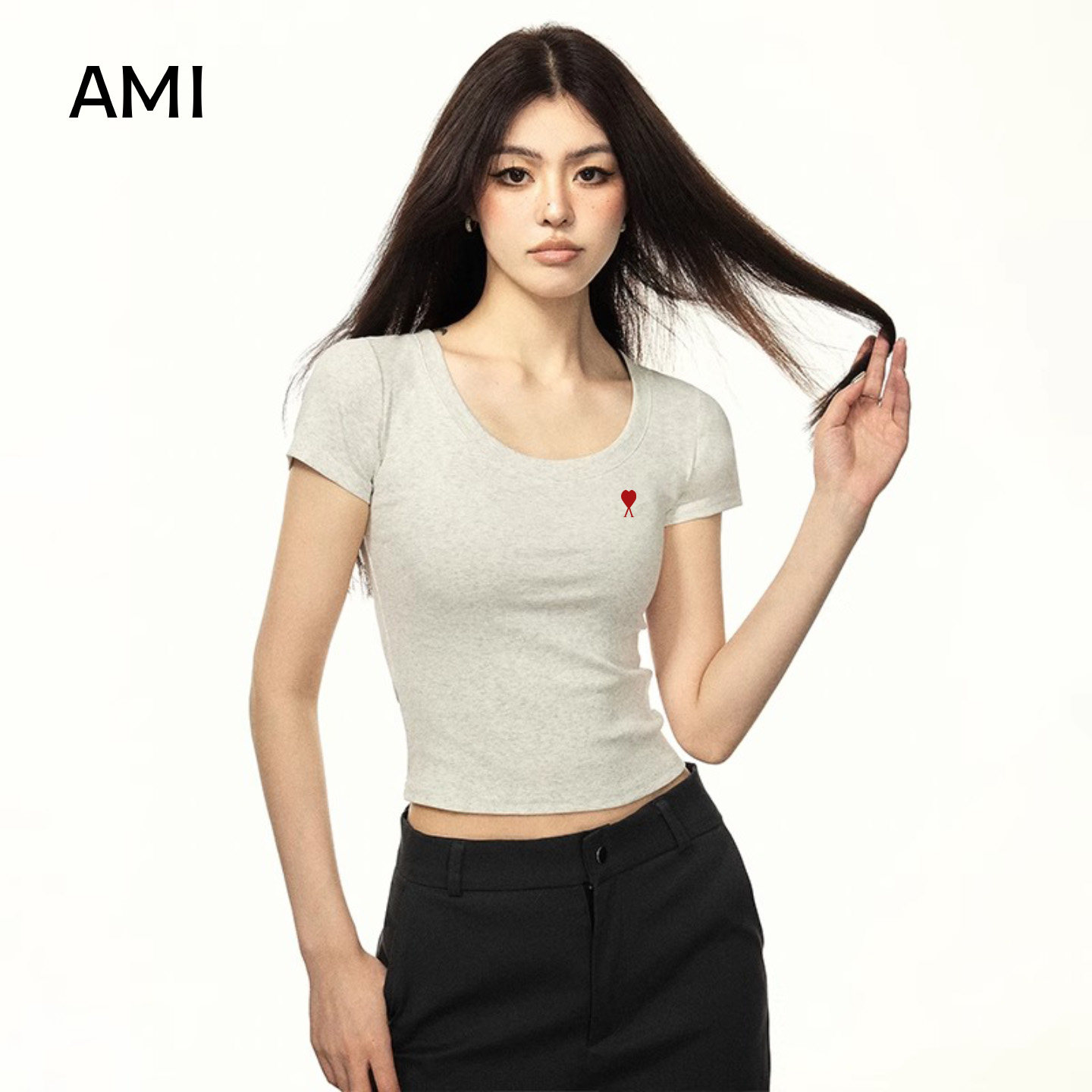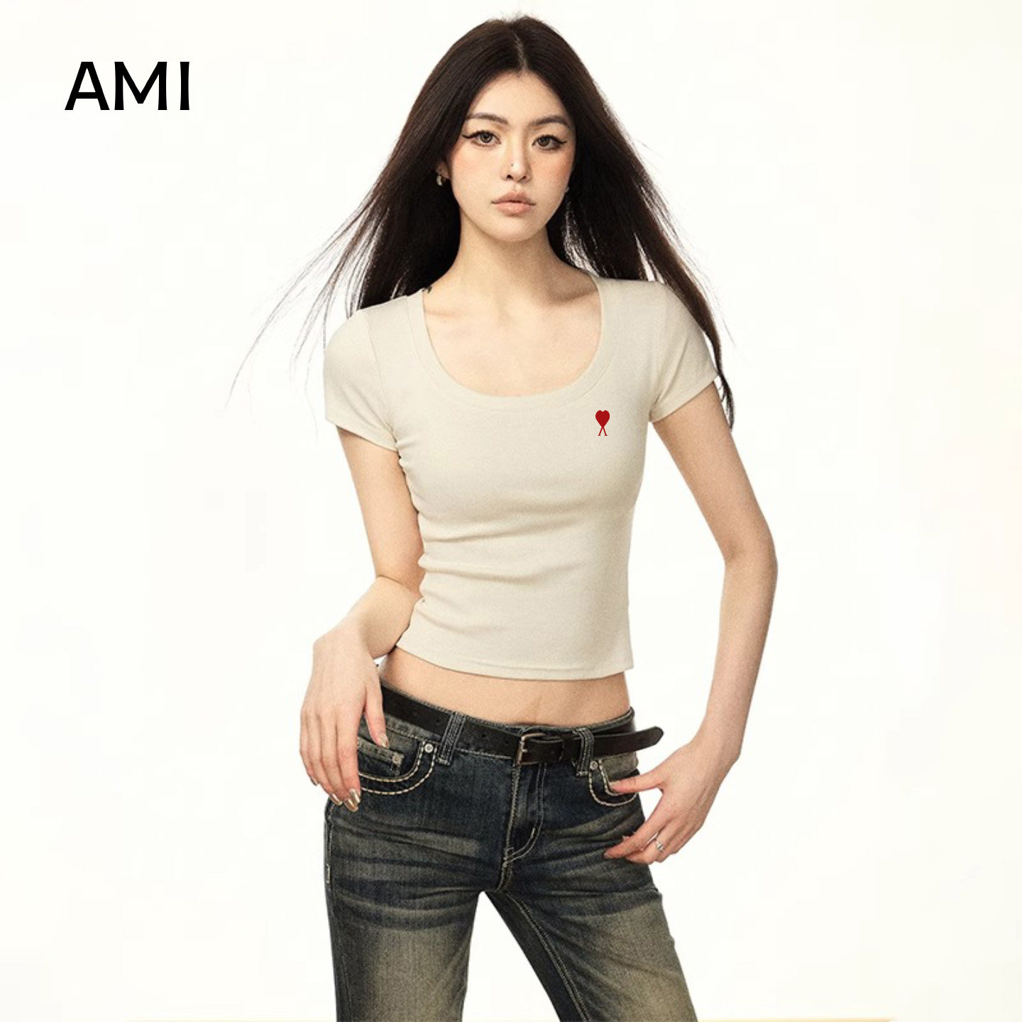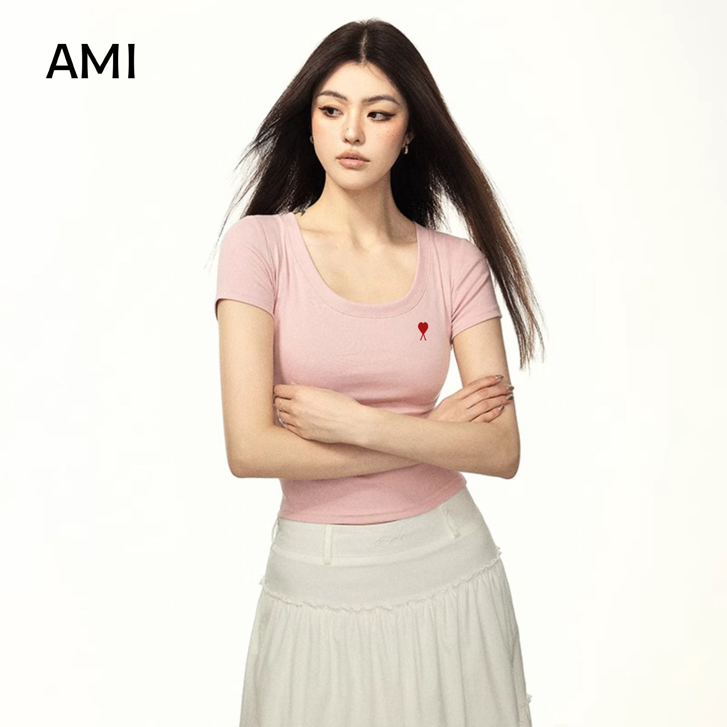 T恤女春季 短袖 白色U领26衫 露脐 正品 修身 薄款 AMI官方旗舰店美式由