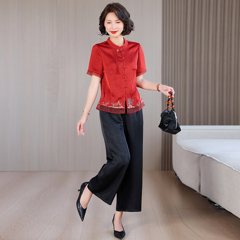 国风上衣时尚 新中式 套装 妈妈春装 早秋外套马甲 三件套中老年女装