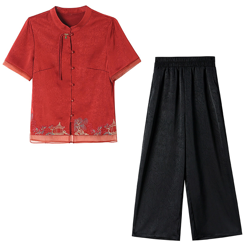 香云纱2025夏季 潮流国风女真丝两件套结绳流苏上衣休闲裤 套装 新款