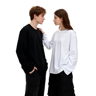 XDFM T恤纯棉230g秋季 纯色打底衫 男女宽松上衣 重磅多色可选长袖由