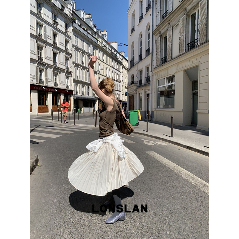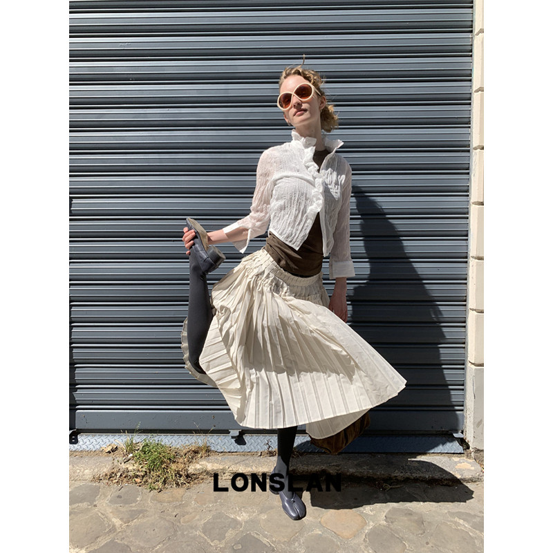 SUMMER 百褶风琴不规则腰头设计半裙 2025 LONSLAN