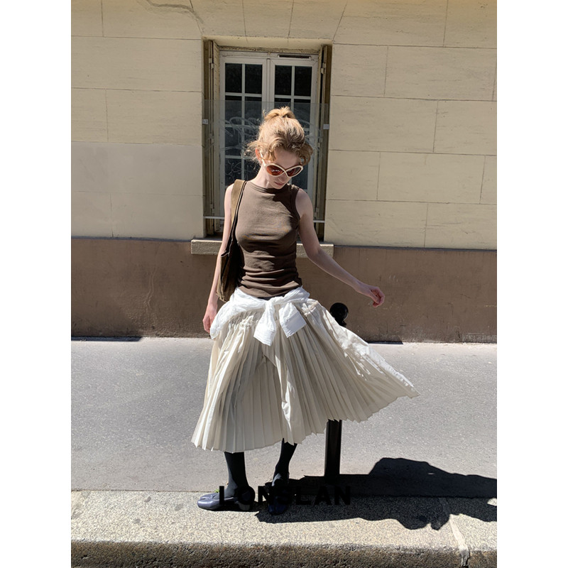 SUMMER 百褶风琴不规则腰头设计半裙 2025 LONSLAN由