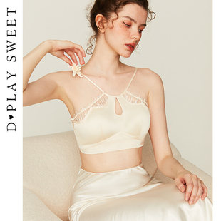 轻奢白色缎面背心蕾丝拼接内衣女可外穿短吊带文胸 DPLAYSWEET法式由