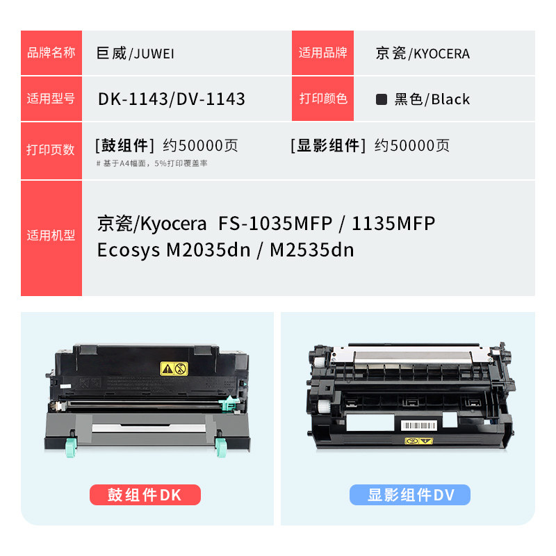 为您提供商品适用京瓷DK 1135MFP硒鼓粉盒Ecosys 1143显影组件 M2535dn墨粉组件 1035MFP 1143鼓组件FS M2035dn的详细介绍,